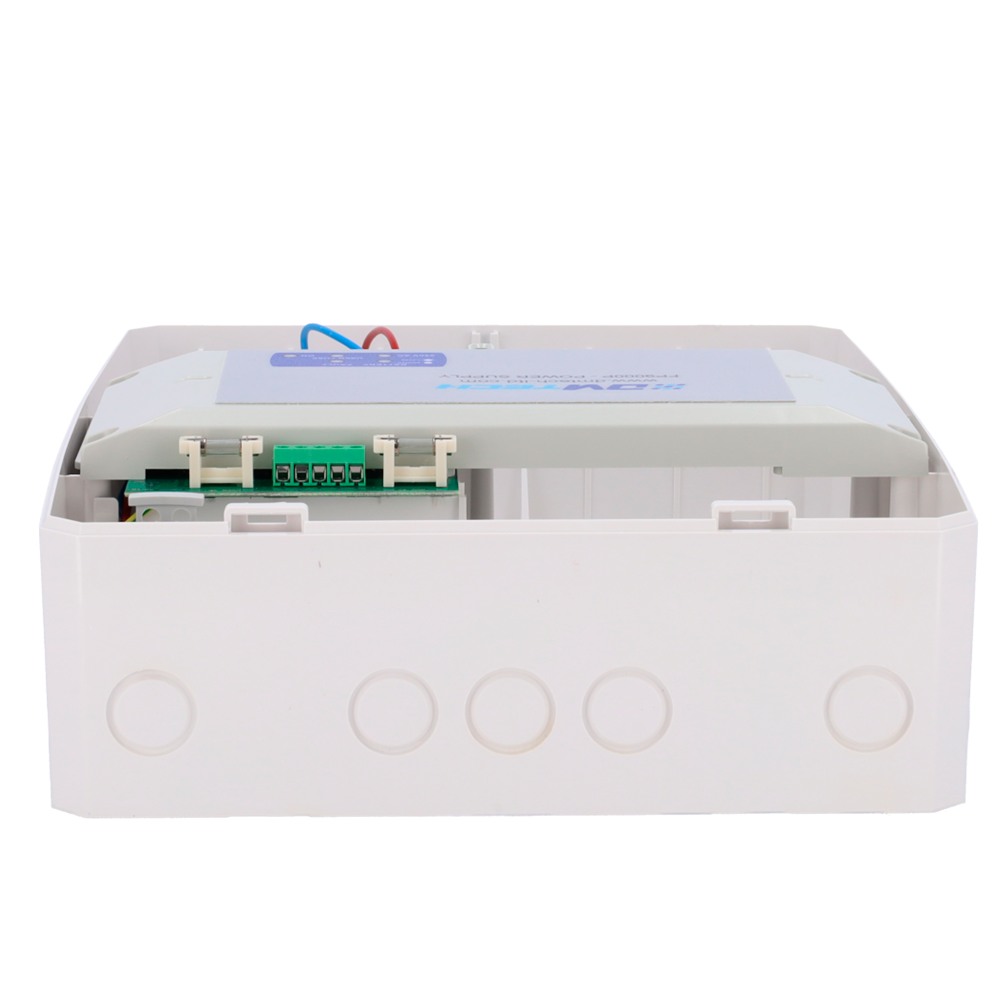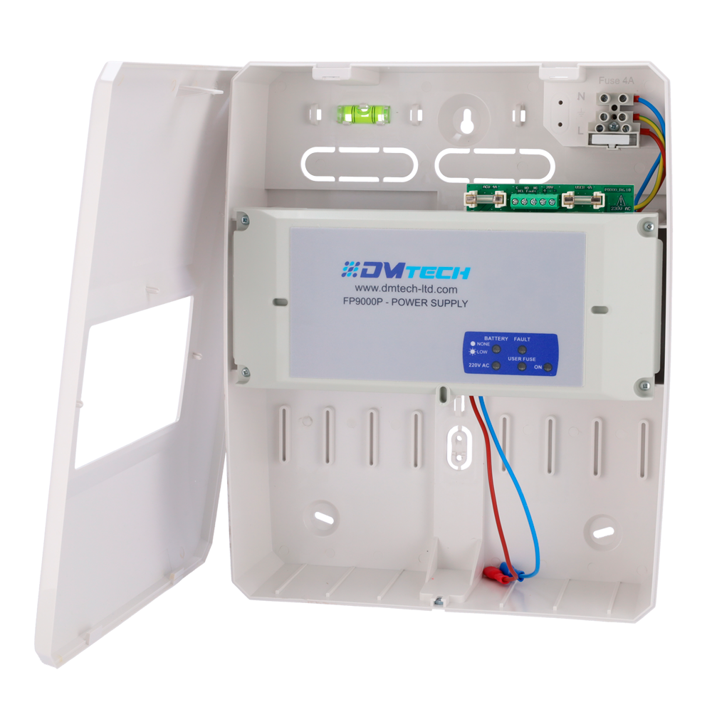 Fuente de alimentación DMTECH – Fabricado bajo certificado EN54-4 – Corriente de salida 2A – Máximo hasta 3.5A durante 15 minutos – Salida auxiliar de fallo – Capacidad para 2 baterias de 12V