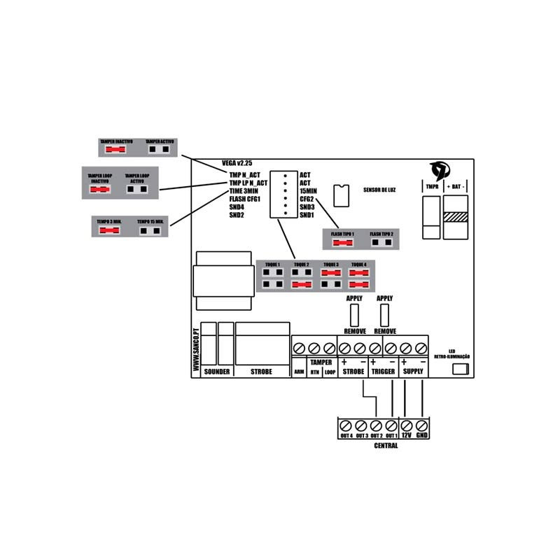 LEDs 1 barras flash de señalización, con beep y flash de armado/desarmado