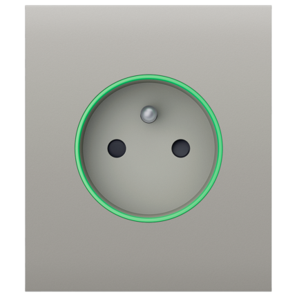 Tapa central para enchufe inteligente tipo F – Compatible con AJ-OUTLETCORE-SMART – Indicador LED sobre estado del enchufe y consumo – Botón táctil para control manual – Retroalimentación LED – Color niebla