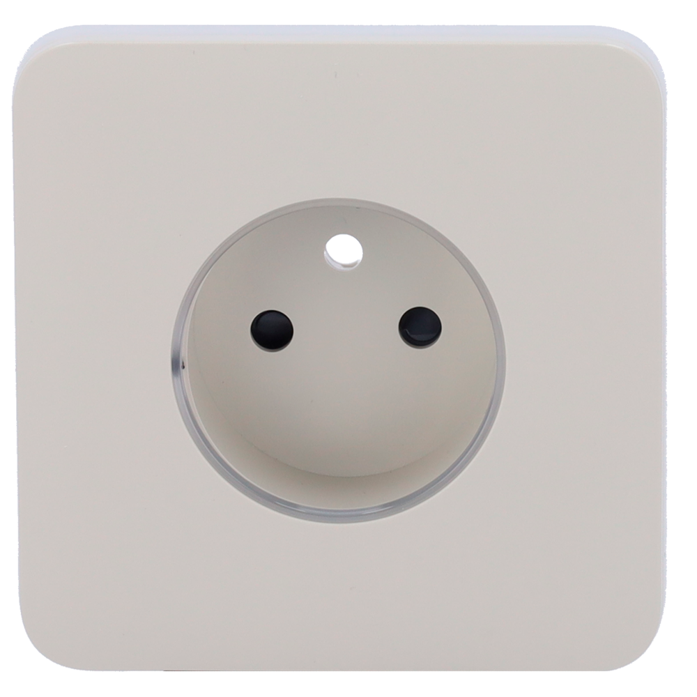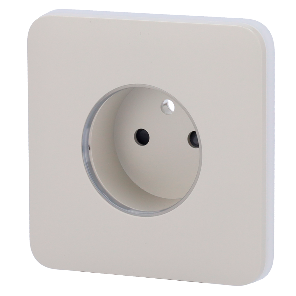 Tapa frontal para enchufe inteligente tipo E – Compatible con AJ-OUTLETCORE-SMART-E – Indicador LED sobre estado del enchufe y consumo – Botón táctil para control manual – Retroalimentación LED – Color ostra