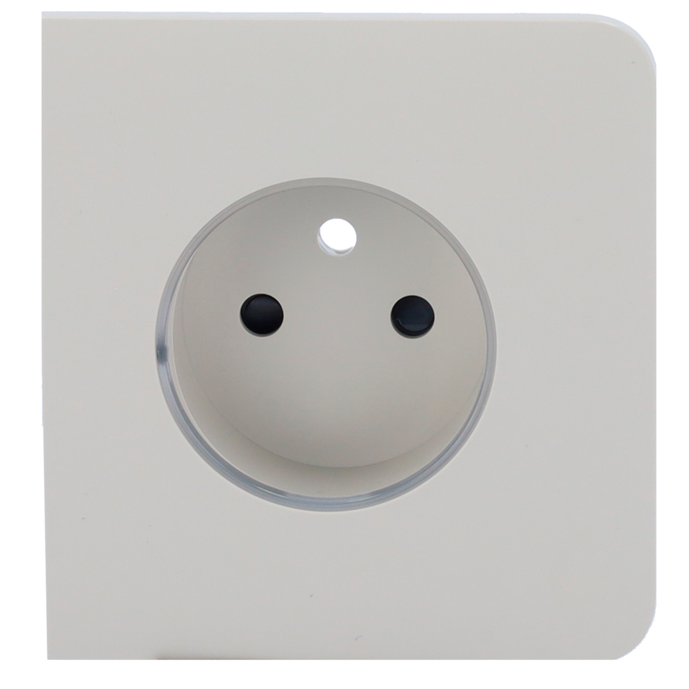 Tapa central para enchufe inteligente tipo E – Compatible con AJ-OUTLETCORE-SMART-E – Indicador LED sobre estado del enchufe y consumo – Botón táctil para control manual – Retroalimentación LED – Color ostra